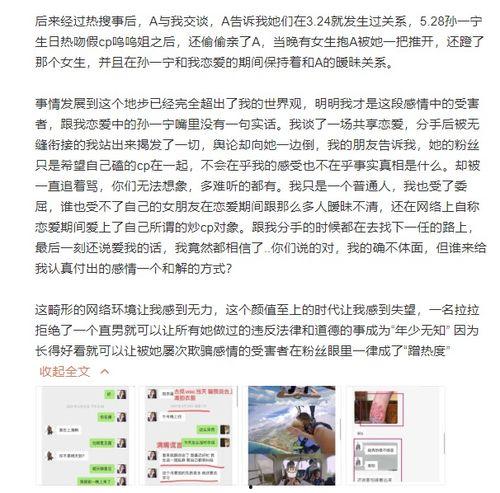 这位神秘的前任在社交媒体上发文,声称自己与孙一宁有过一段刻骨铭心的恋情。他详细描述了两人相识、相恋、分手的全过程,言语间充满了对孙一宁的怀念和惋惜。他还透露,这段感情中,孙一宁曾因为事业繁忙而忽略了他们的感情,这让前任倍感心酸。